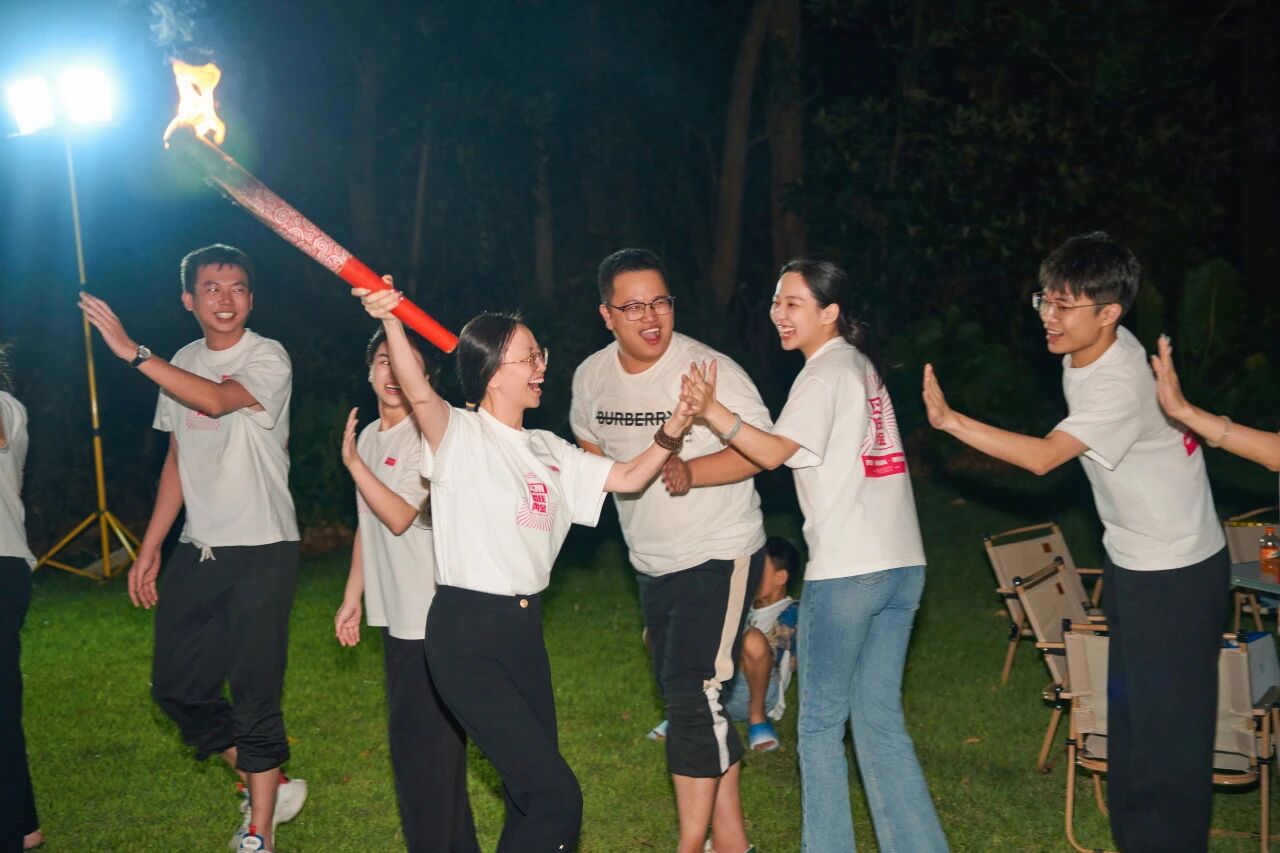 Upon arrival that evening, a vibrant bonfire party was held. Dances, games, and a creative grass catwalk show followed one after another. General Manager Zhuo Hancai and Deputy General Manager Su Xiaohong jointly lit the bonfire, officially kicking off the event, with the flames reflecting the warmth and enthusiasm of every Swiky member.
