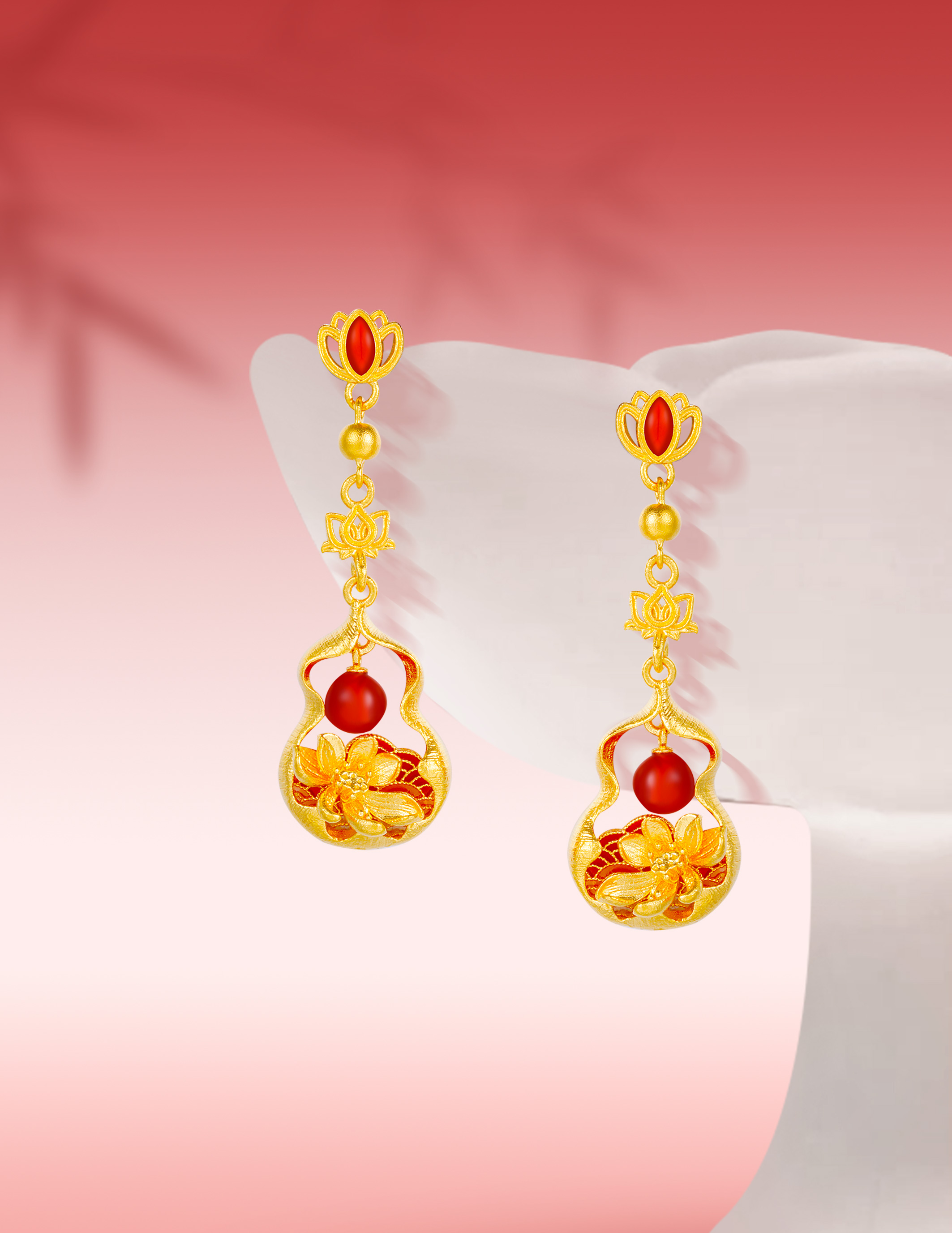 The Unyielding Red Series reinterprets traditional motifs with a contemporary perspective, incorporating gourd and coin shapes as symbols of fortune, and inlays vibrant red chalcedony to make joy tangible and auspiciousness shine. The gourd, pronounced “fu lu,” is full and rounded, symbolizing cosmic vitality, harmonious union, enduring blessings, and generational prosperity. With gold inlaid around the stone, its rounded form and the wish for longevity embody contained blessings. The traditional coin, circular on the outside and square within, reflects the harmony of heaven and earth, symbolizing smooth financial flow and integrity. Wealth circulates endlessly, opportunities arise repeatedly, and the design wishes both prosperity and virtue to flourish together. When the gourd’s fortune meets the coin’s wealth, and the fiery red integrates with the timeless gold, this color illuminates life’s significant moments, representing abundant blessings, wealth, and happiness. Every step is Unyielding Red, radiating its own brilliance.