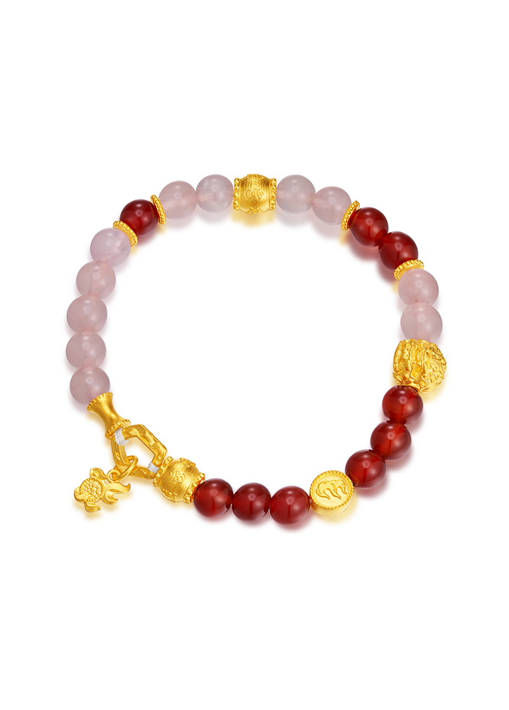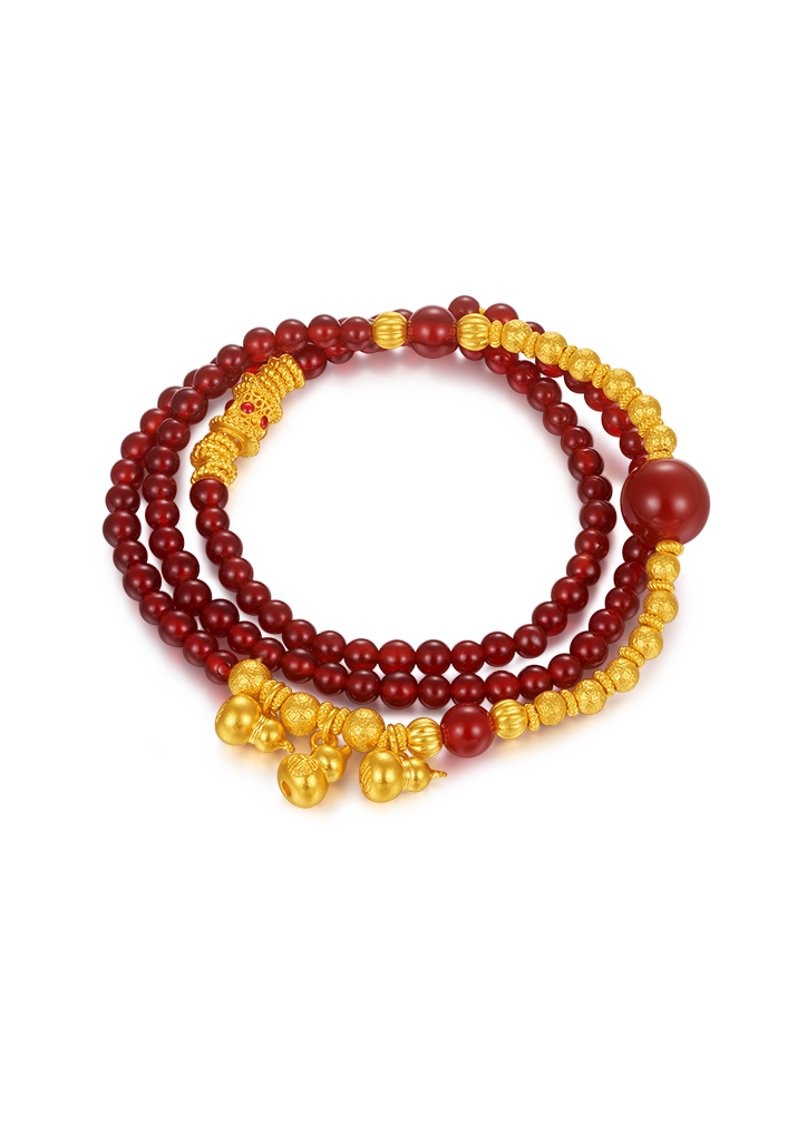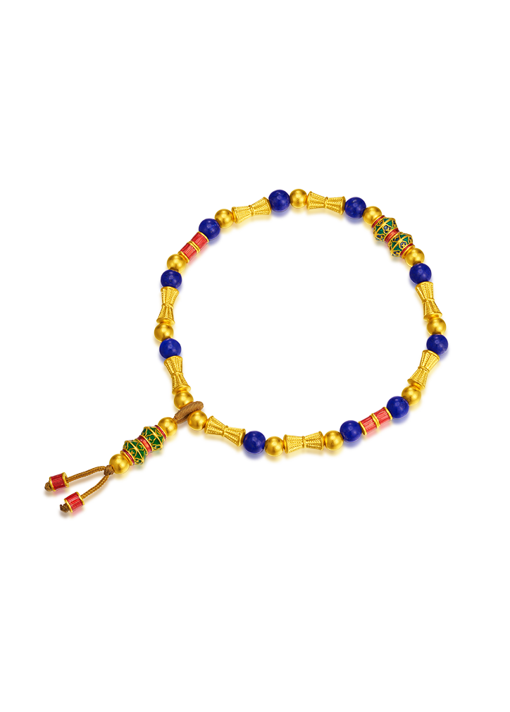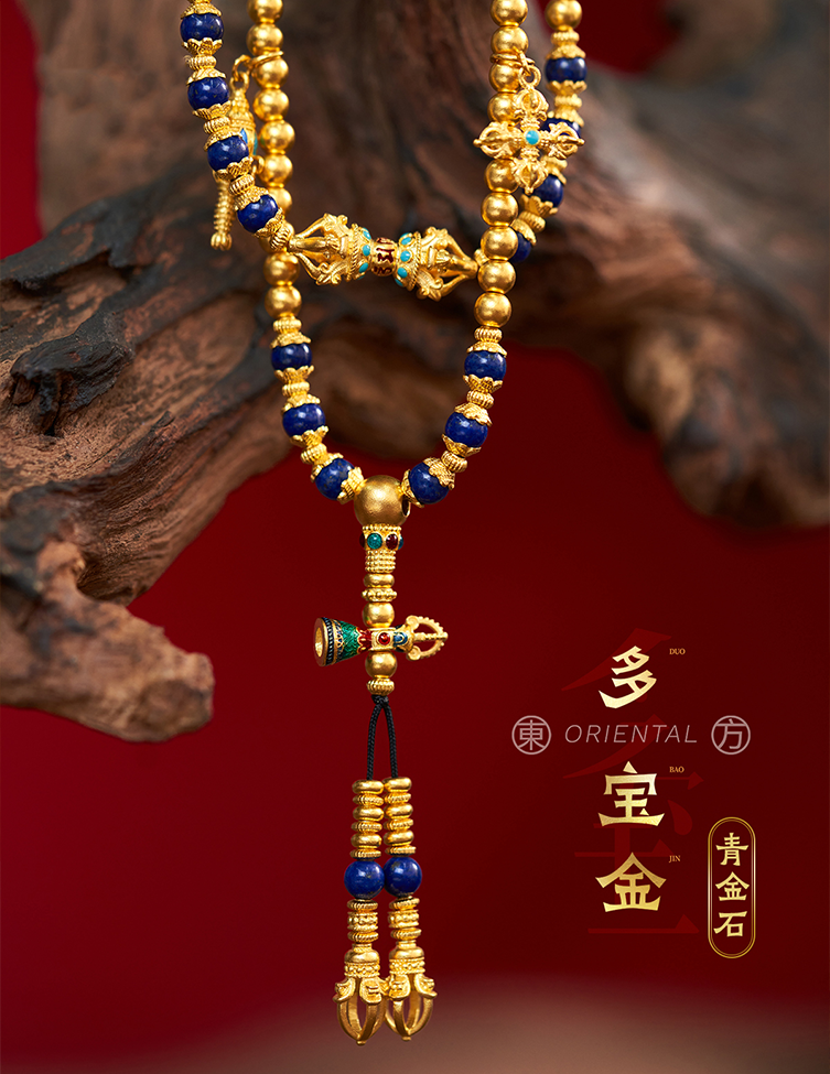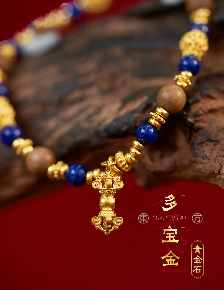 用多种材质搭配古法金做成文玩手串,更赋予吉祥寓意
