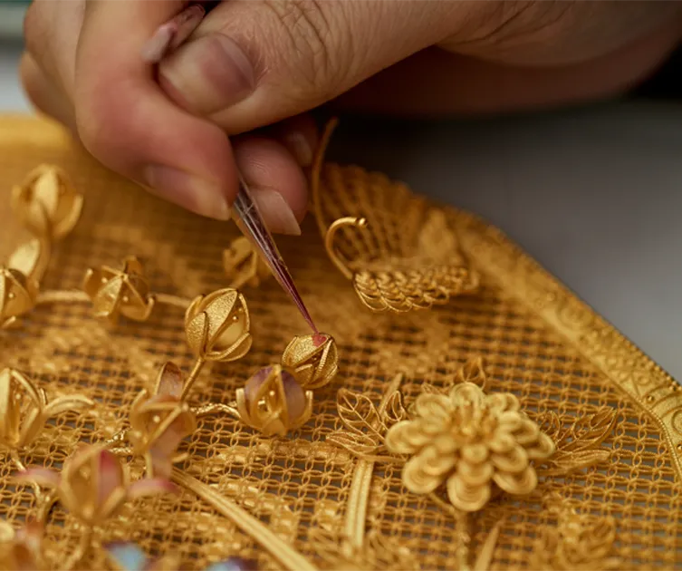 For five consecutive years, the company has been ranked among China’s Top Ten Gold Jewellery Processing Enterprises, and has served as a joint promotion partner for Heritage Gold and Hard Pure Gold with the World Gold Council, as well as a promotional supply partner of the Platinum Guild International (PGI). Its product portfolio comprehensively covers Heritage Gold, 5G Gold, Pure Gold, Premium Pure Gold, 3D Hard Gold, 5D Hard Gold, Heritage Gold with gemstone setting, 5G gemstone setting, 5D gemstone setting, 18K Gold, 4D–18K Gold, 22K Gold, Platinum, and more.