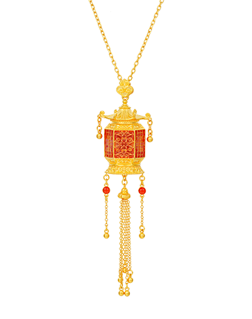the design incorporates auspicious motifs such as gourds and ancient coins.