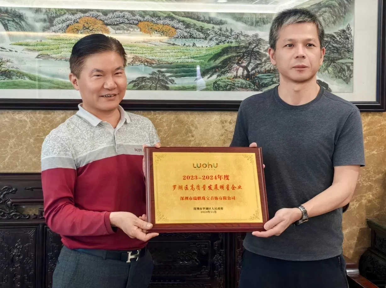 Mr. Guo Guilin, Director of the Luohu District Science, Technology and Industry Information Bureau, visited Swiky Jewelry for an on-site inspection and guidance. On behalf of the Luohu District CPC Committee and District People’s Government, he presented the honorary plaque to Swiky Jewelry.