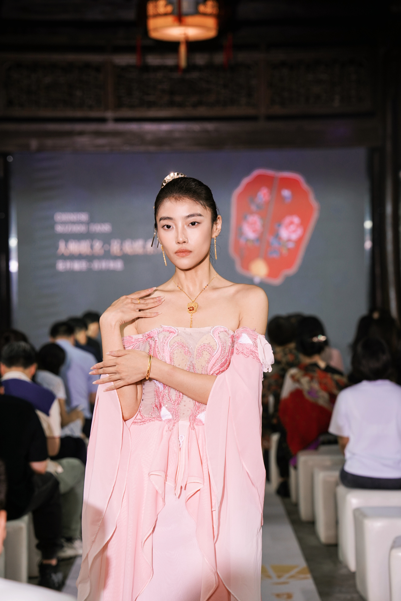 Vividly interpreted through the "Rhythm of the Fan" model show, the profound meaning of the Intangible Cultural Heritage Treasure·Suzhou Fans series was authentically presented. The fusion and collision of national style and fashion offered guests a continuously surprising visual feast.