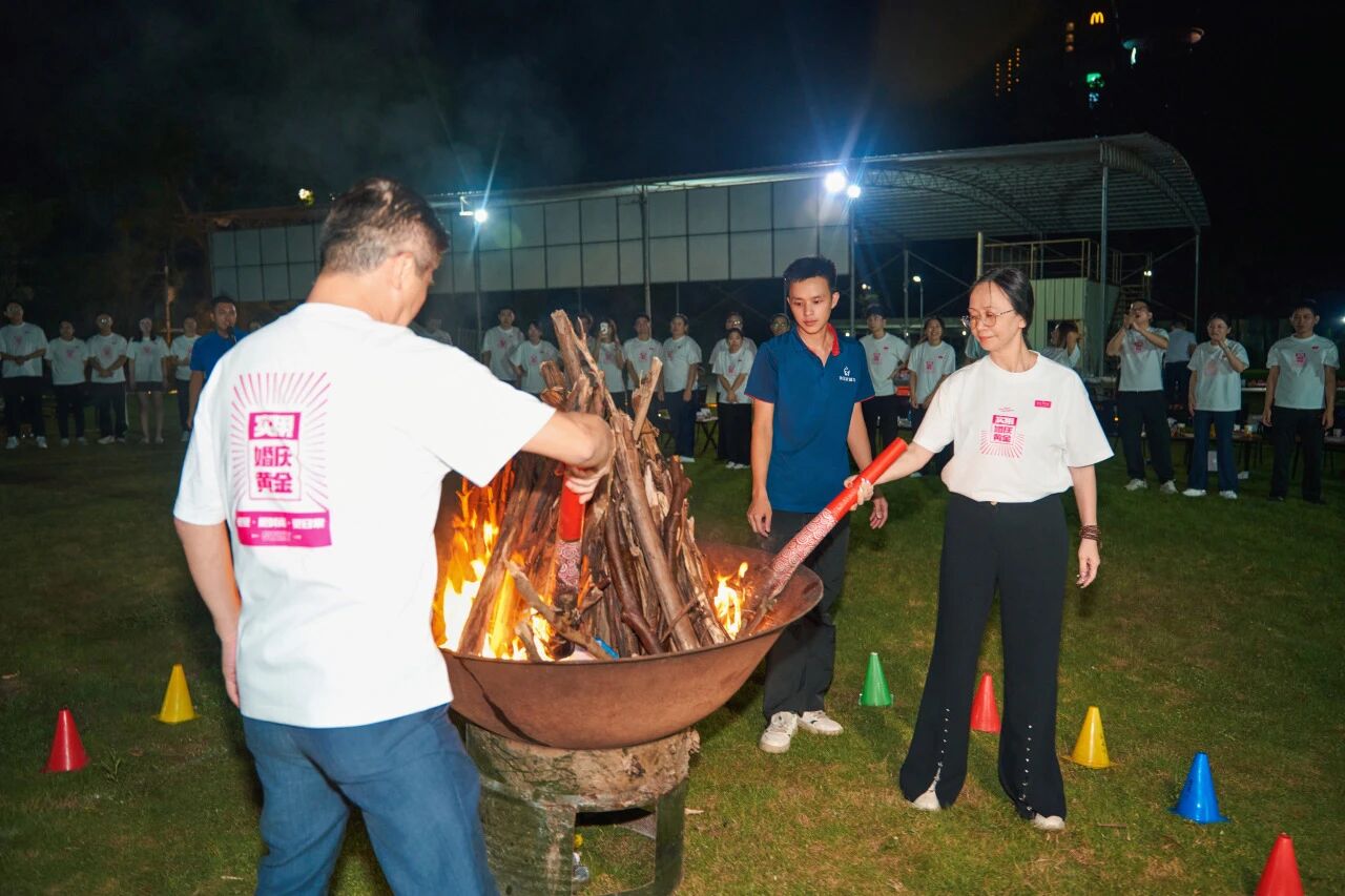 Upon arrival that evening, a vibrant bonfire party was held. Dances, games, and a creative grass catwalk show followed one after another. General Manager Zhuo Hancai and Deputy General Manager Su Xiaohong jointly lit the bonfire, officially kicking off the event, with the flames reflecting the warmth and enthusiasm of every Swiky member.
