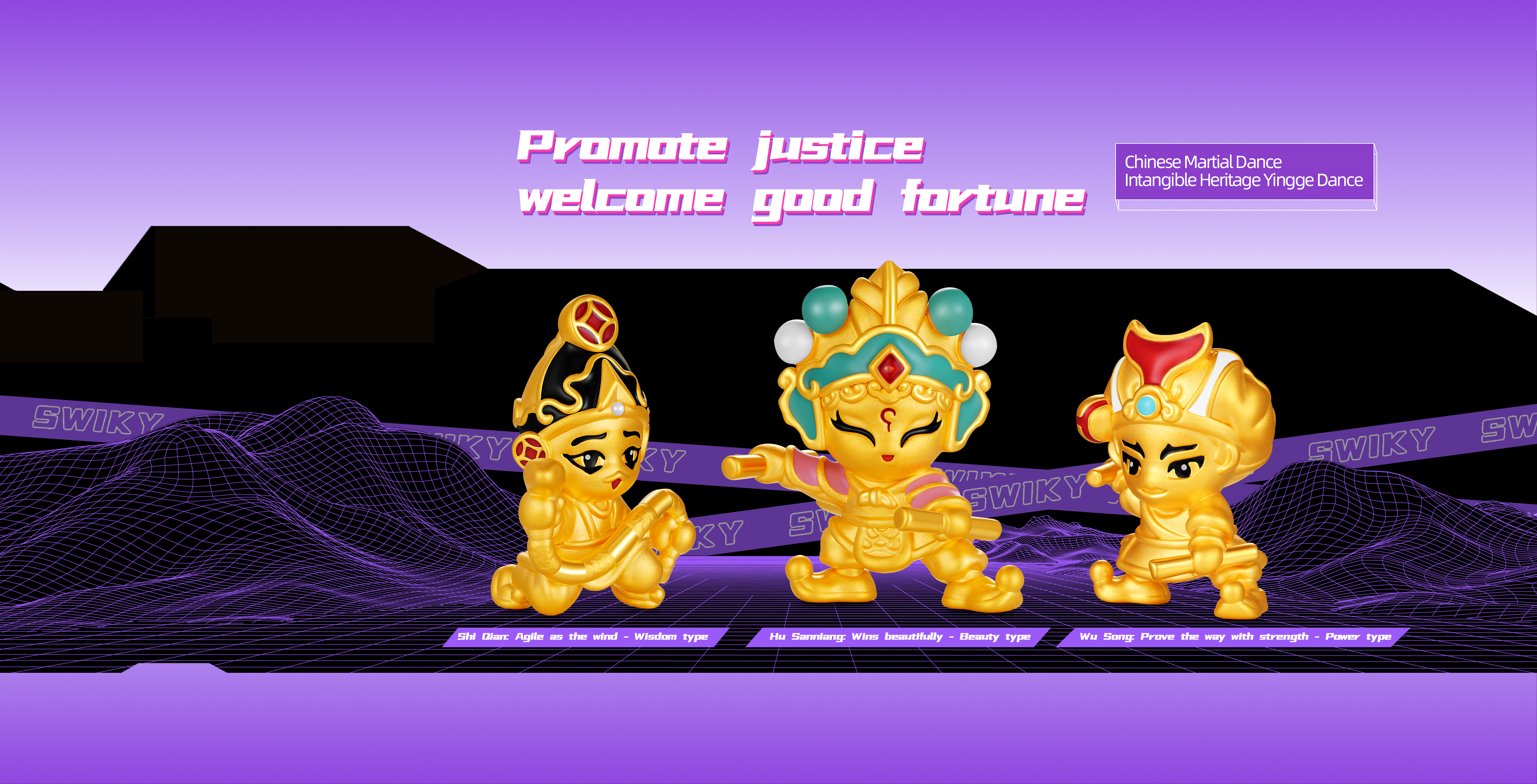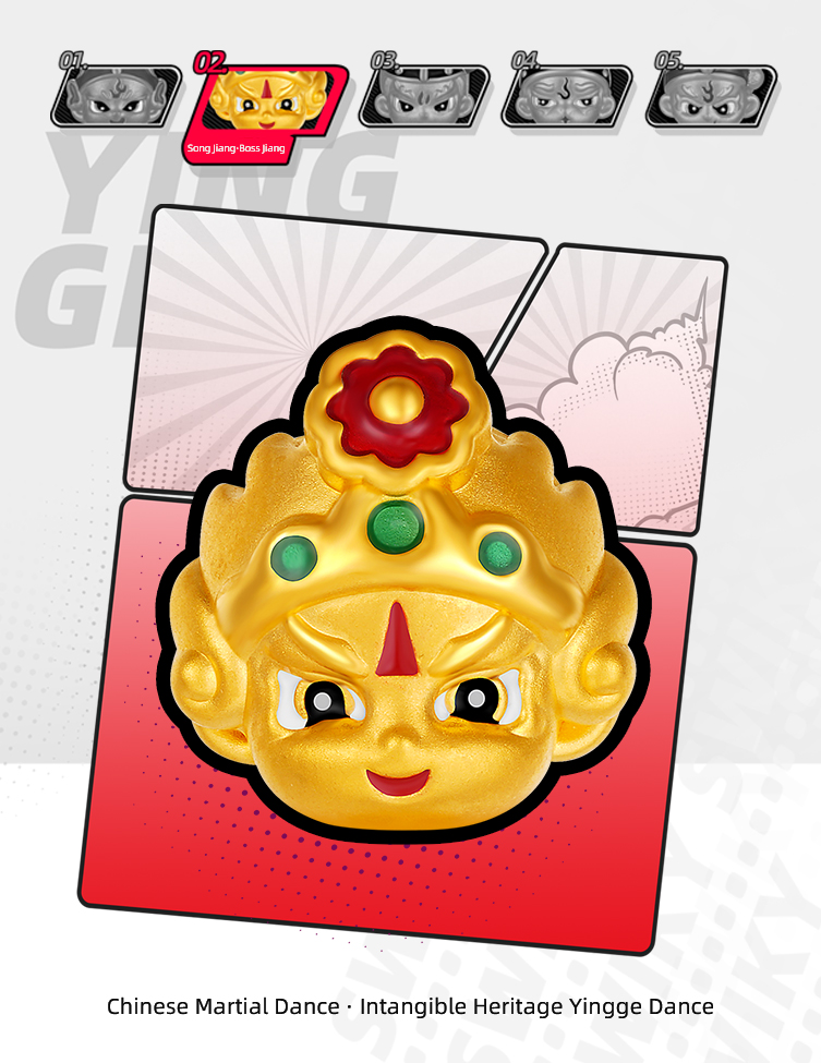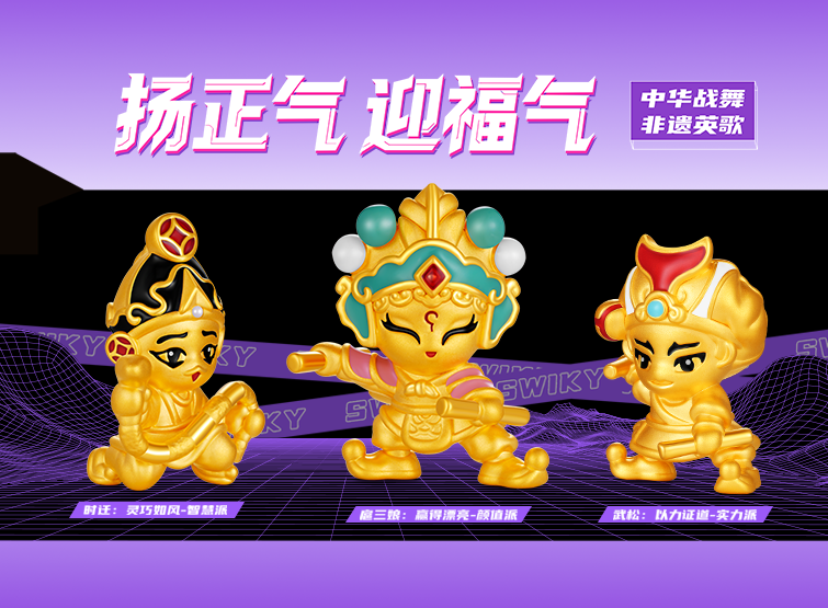 At the strike of a gong, the curtain of history is thrust open. Across the vast land of China, the heroic figures of Yingge burst forth like thunder and lightning, traversing mountains and ages, resounding with undiminished power to this day. This is the soul of intangible heritage, tempered by time; an Eastern war dance where strength meets beauty; a heroic narrative deeply etched into collective memory. The Chinese Martial Dance · Intangible Heritage Yingge Dance Series takes 5D hard pure gold craftsmanship as its structural core, re-sculpting the powerful physiques and dynamic instants of Yingge figures. The surface is treated with a diamond-sand finish, allowing gold to shimmer with star-like brilliance, as if tracing the sharp gusts stirred by the heroes’ swinging batons. In the finer details, high-saturation color-gilding techniques are meticulously applied: the intense hues of battle attire, the bold patterns of facial masks, and the piercing vitality of the eyes are rendered with lifelike precision. Through a dialogue between modern technology and ancient spirit, intangible heritage is reborn within the eternity of pure gold, gaining a renewed dimension of life.
