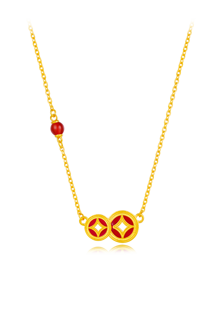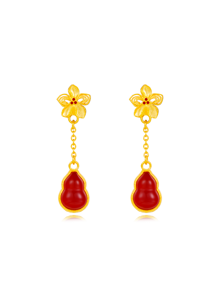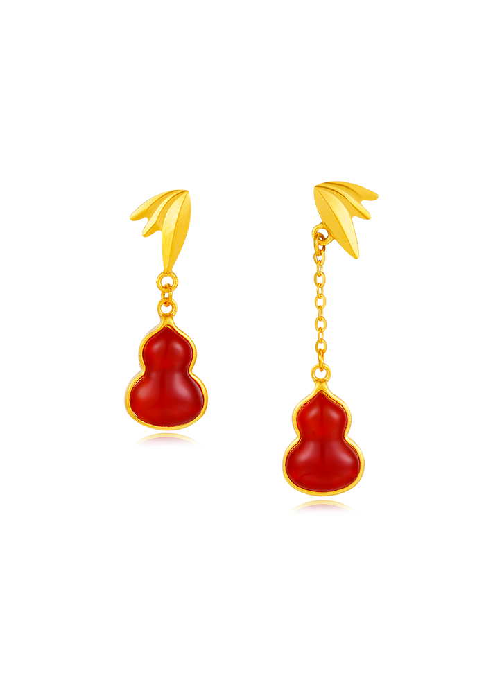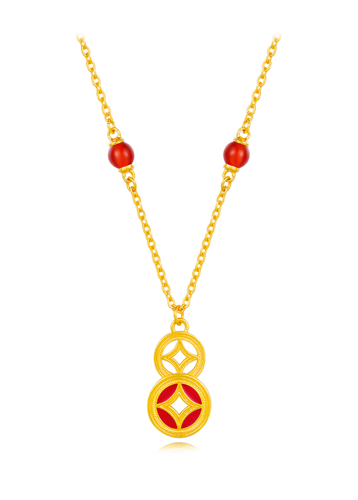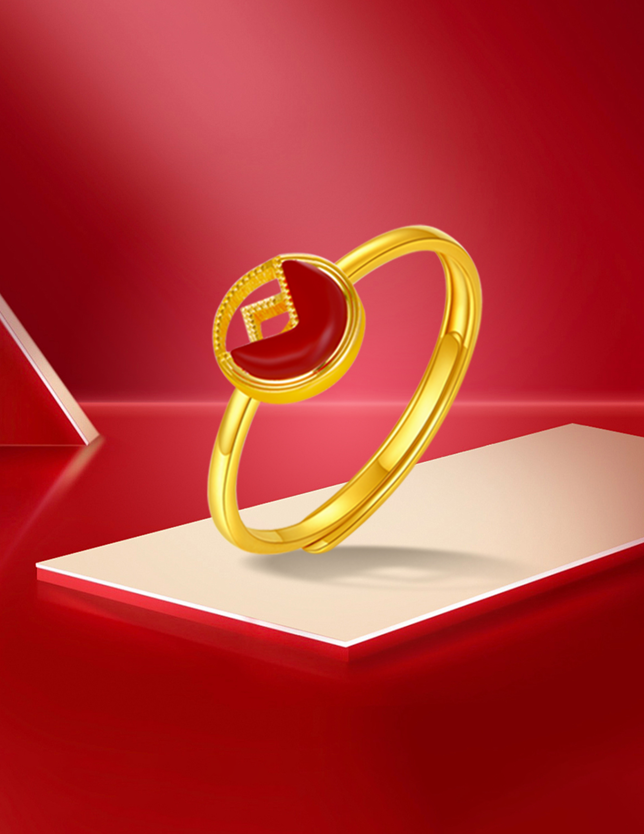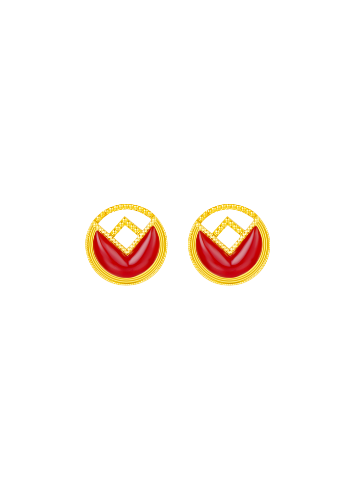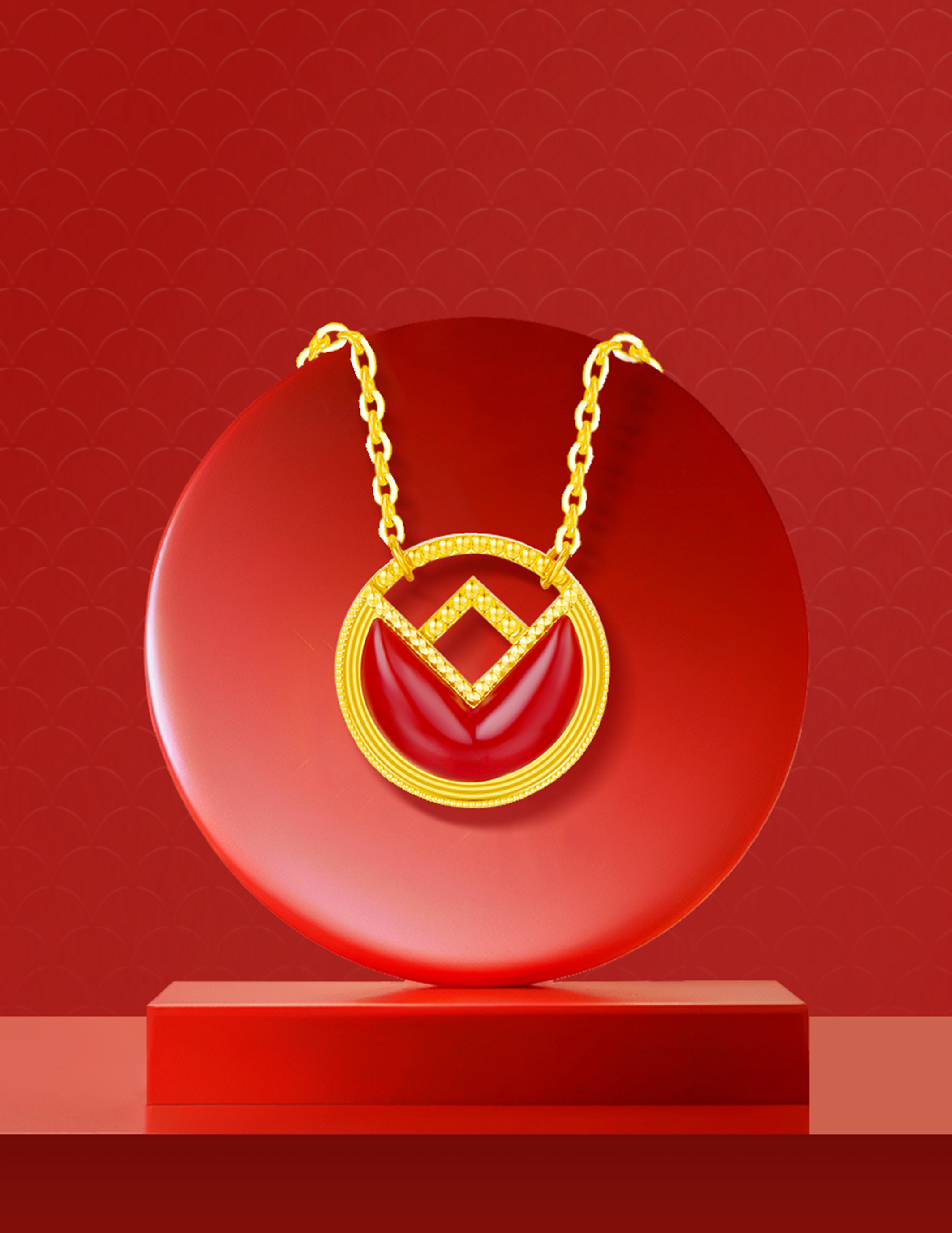 The Unyielding Red Series reinterprets traditional motifs with a contemporary perspective, incorporating gourd and coin shapes as symbols of fortune, and inlays vibrant red chalcedony to make joy tangible and auspiciousness shine. The gourd, pronounced “fu lu,” is full and rounded, symbolizing cosmic vitality, harmonious union, enduring blessings, and generational prosperity. With gold inlaid around the stone, its rounded form and the wish for longevity embody contained blessings. The traditional coin, circular on the outside and square within, reflects the harmony of heaven and earth, symbolizing smooth financial flow and integrity. Wealth circulates endlessly, opportunities arise repeatedly, and the design wishes both prosperity and virtue to flourish together. When the gourd’s fortune meets the coin’s wealth, and the fiery red integrates with the timeless gold, this color illuminates life’s significant moments, representing abundant blessings, wealth, and happiness. Every step is Unyielding Red, radiating its own brilliance.