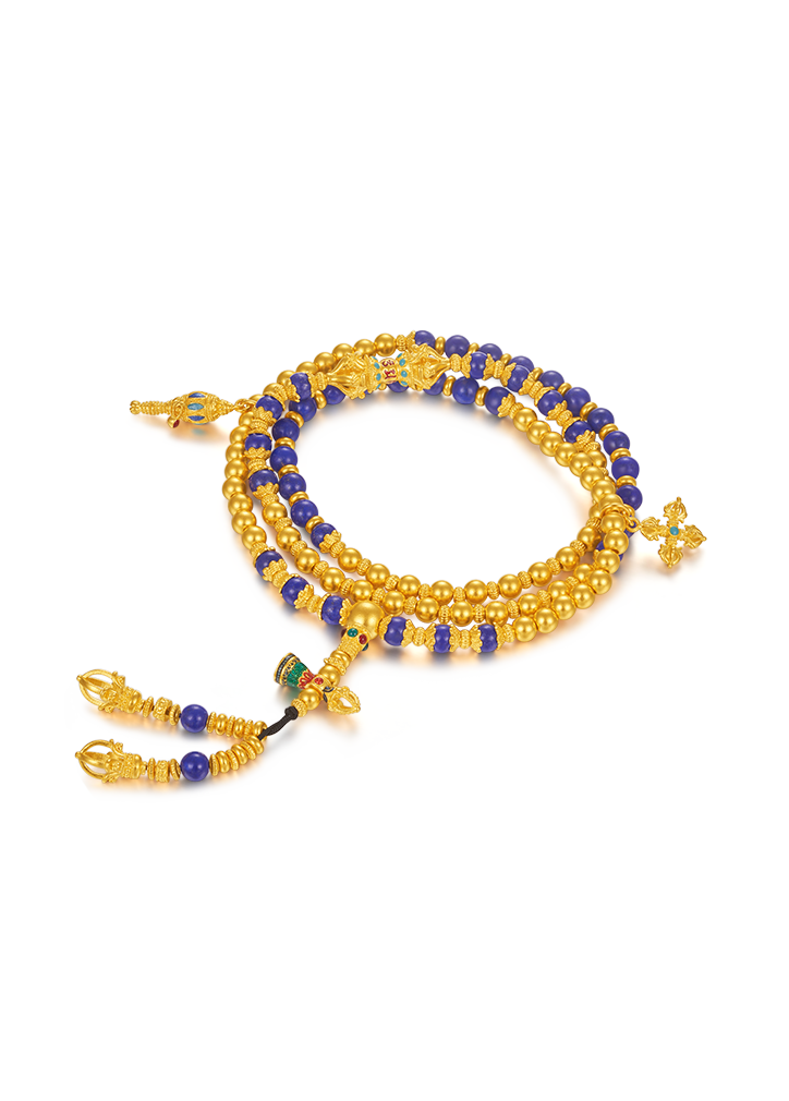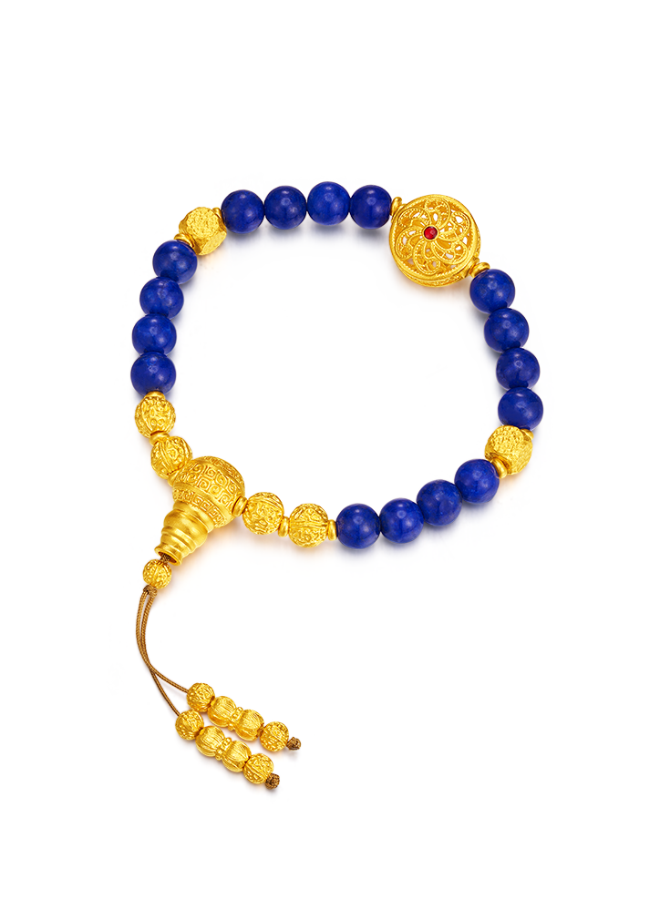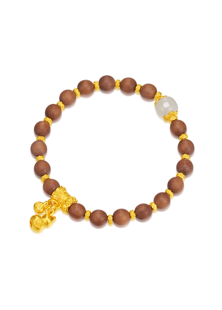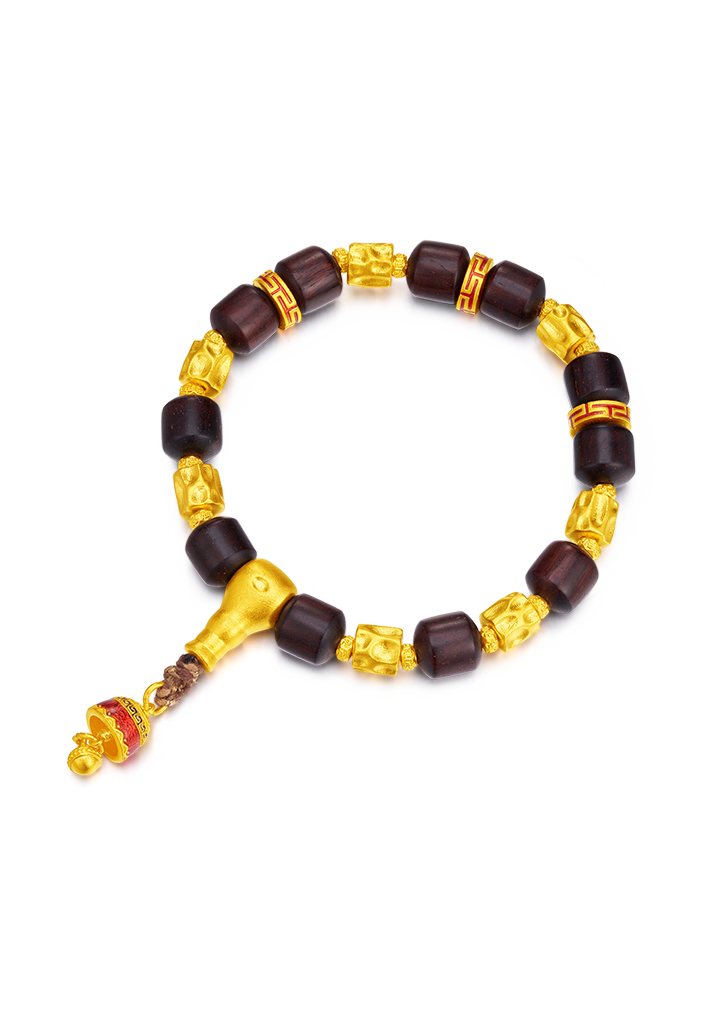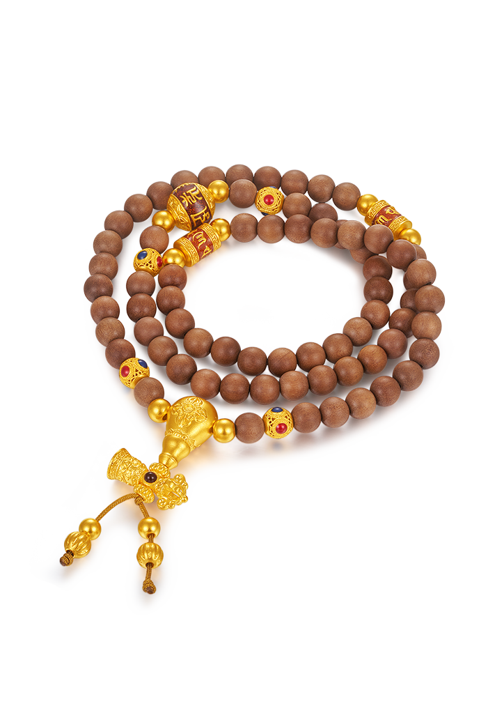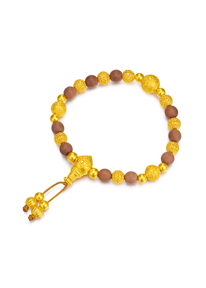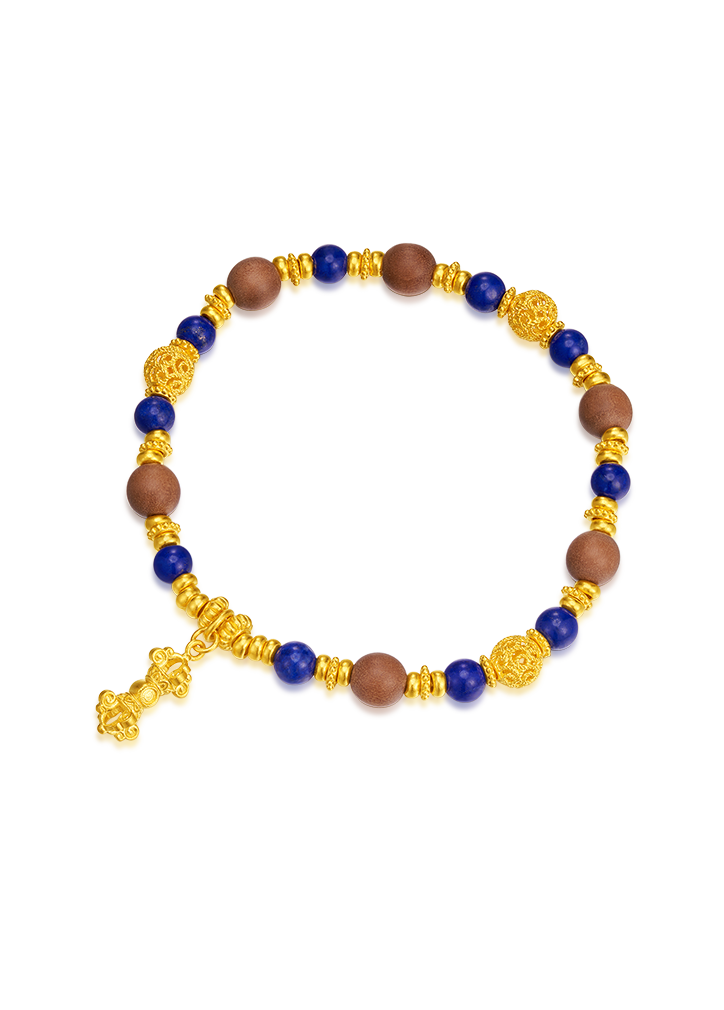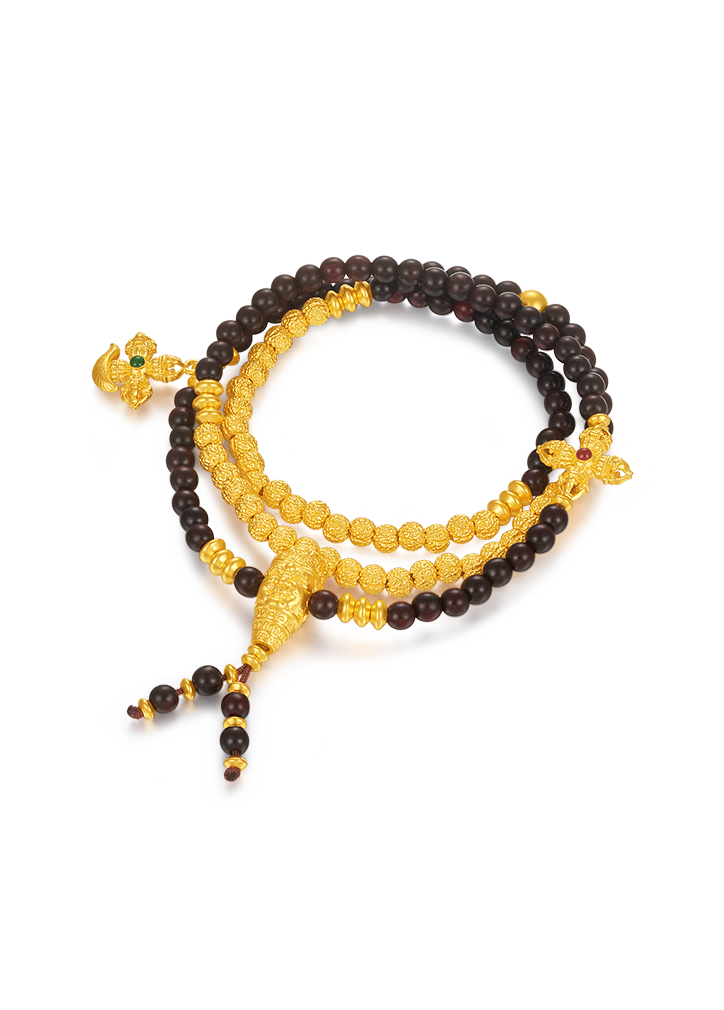 用多种材质搭配古法金做成文玩手串,更赋予吉祥寓意
