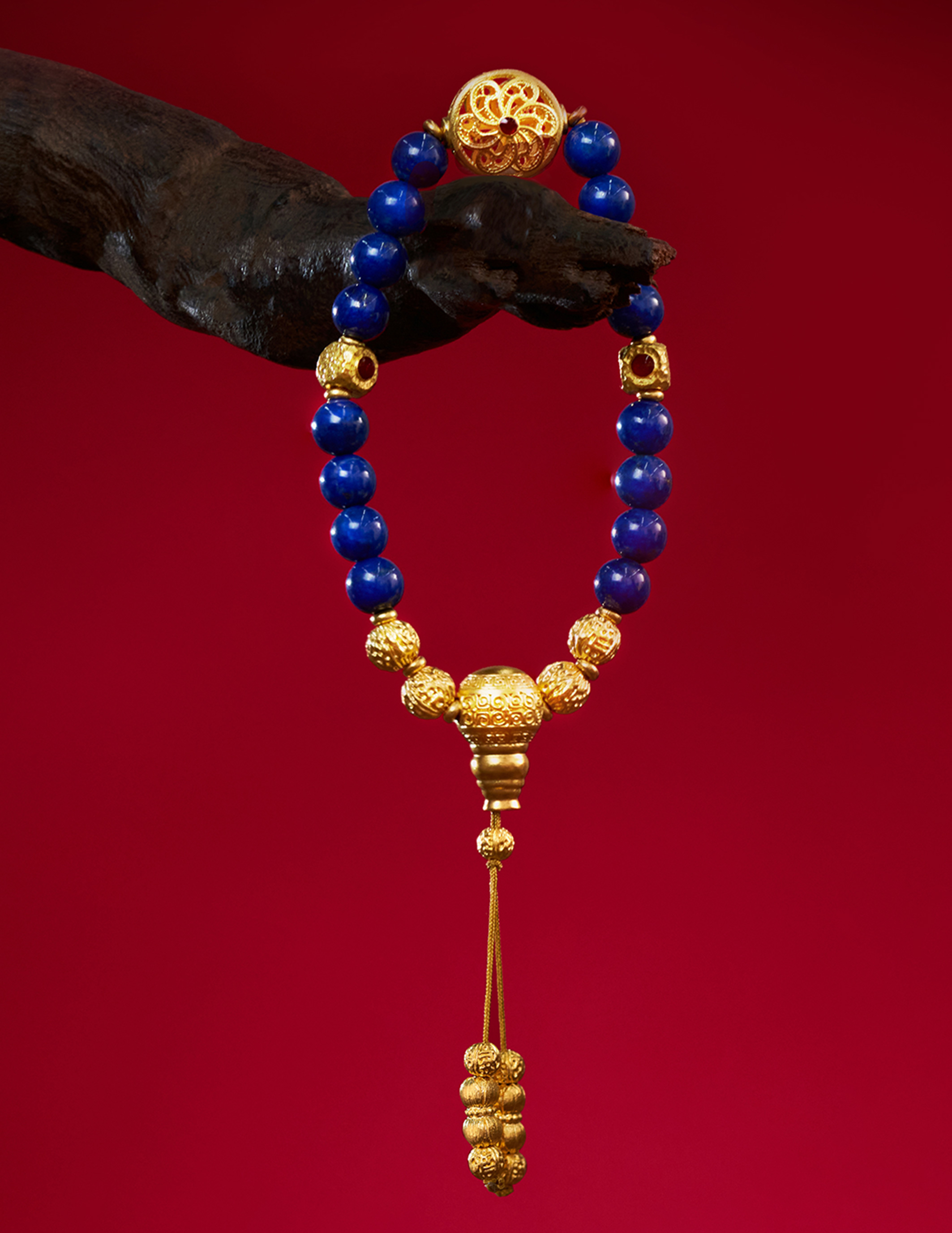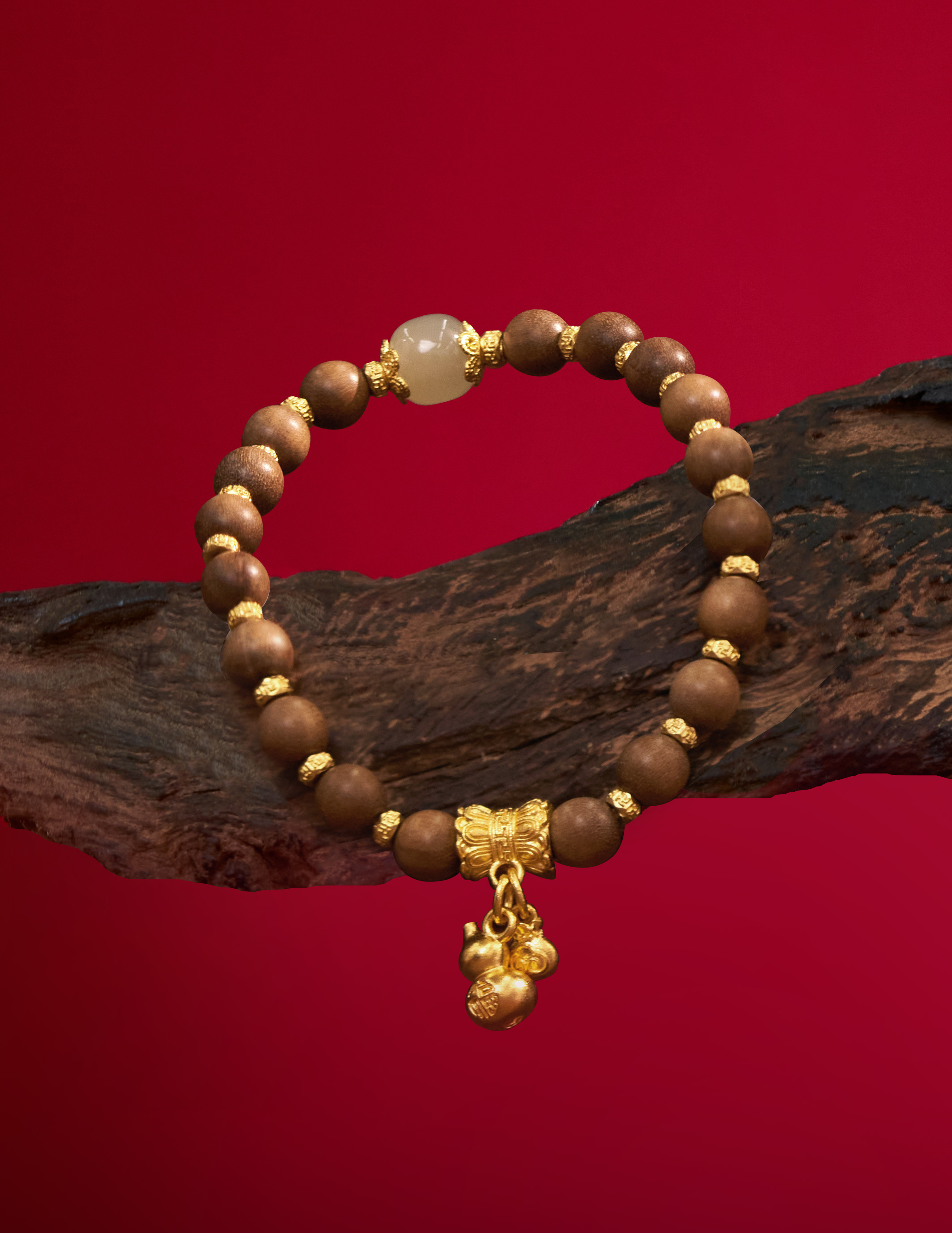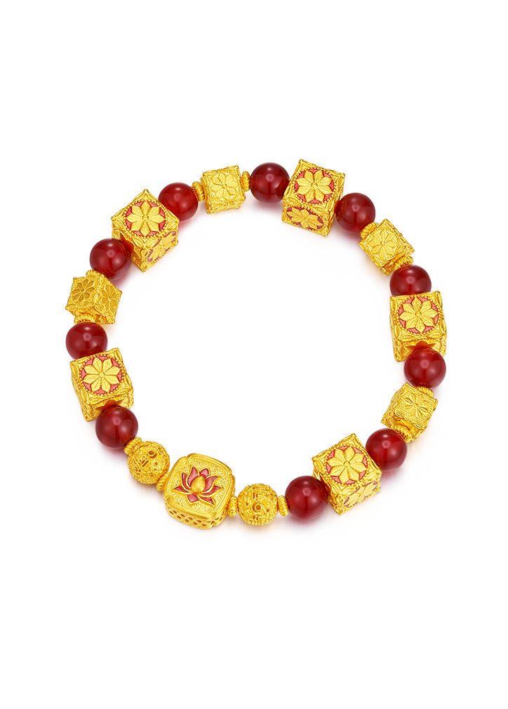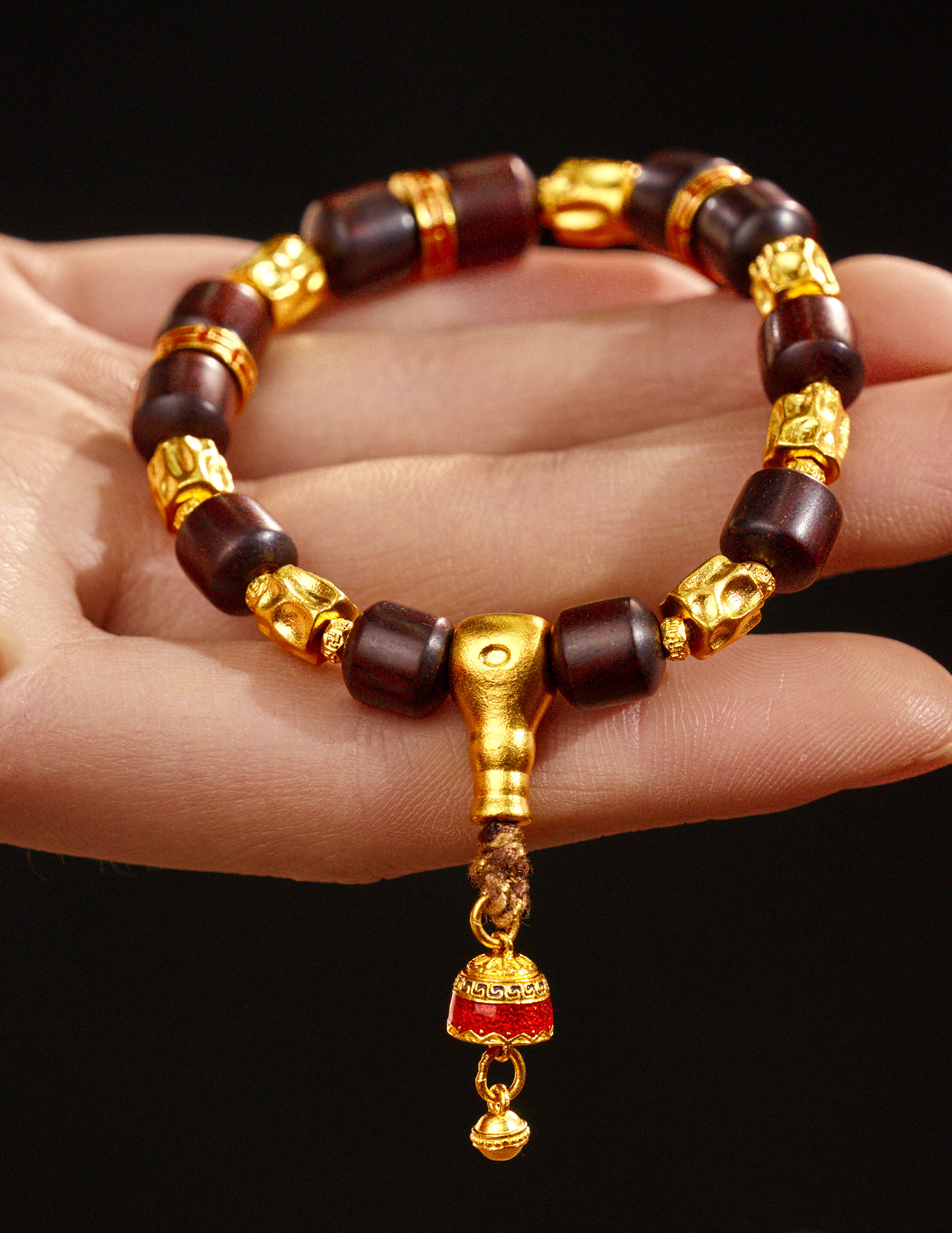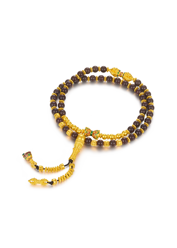 用多种材质搭配古法金做成文玩手串,更赋予吉祥寓意