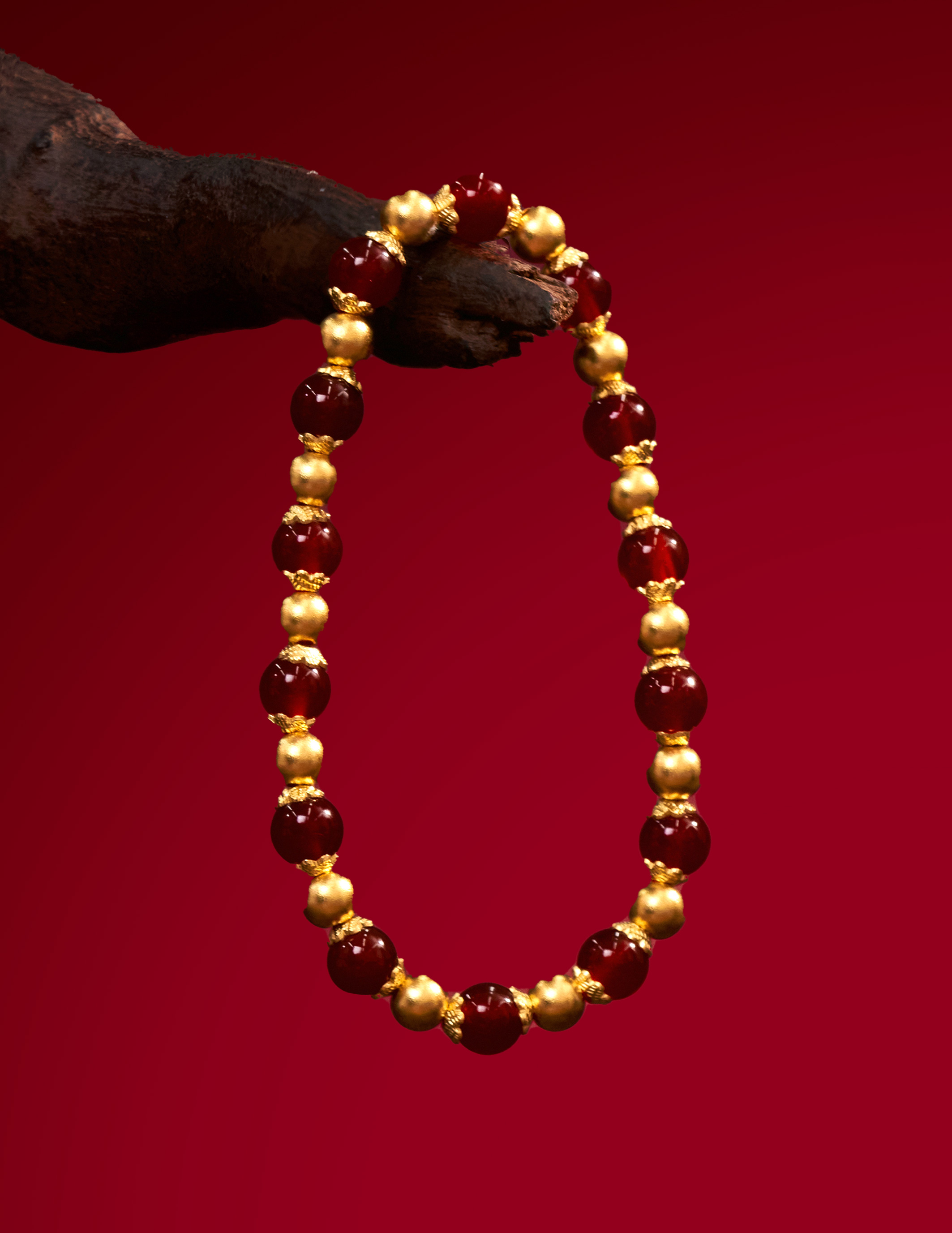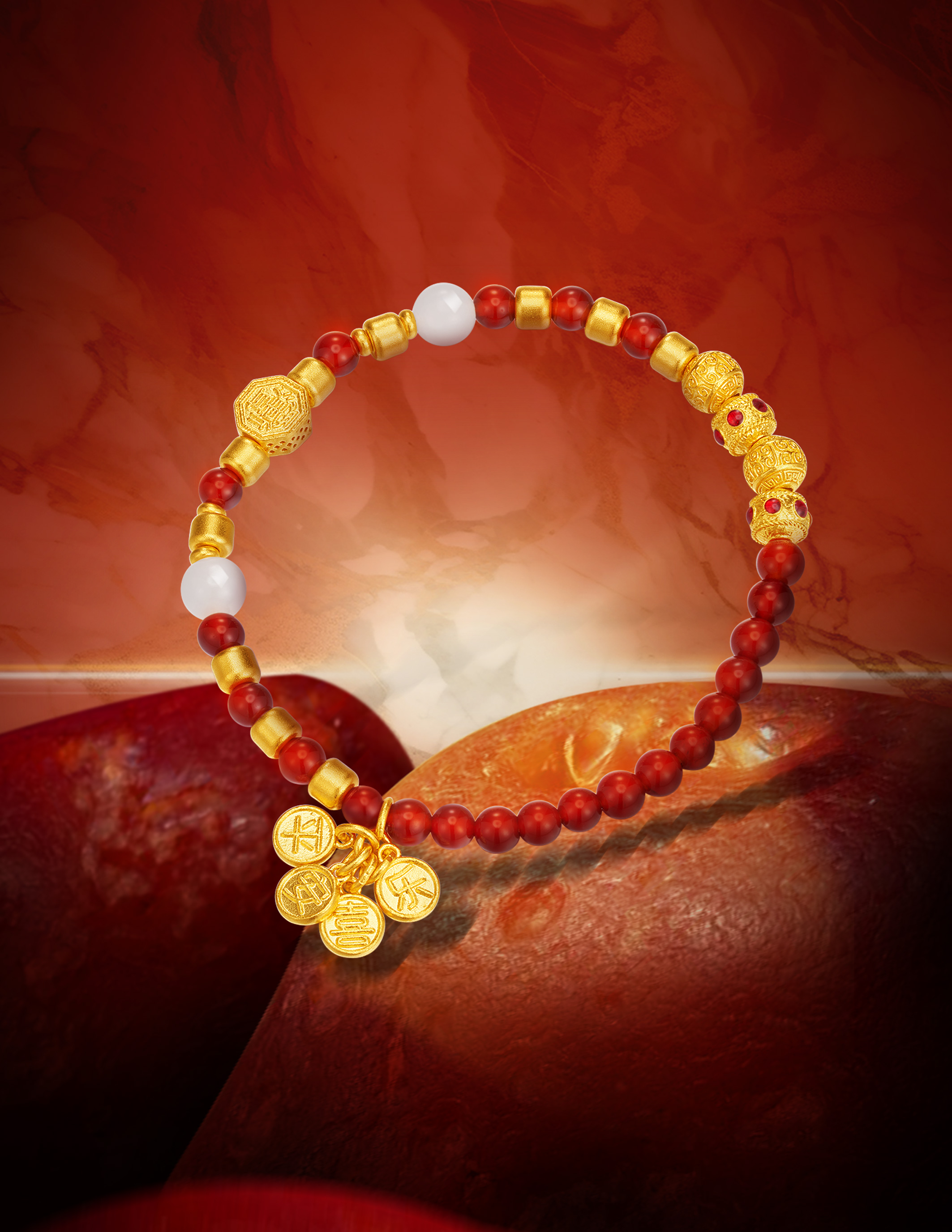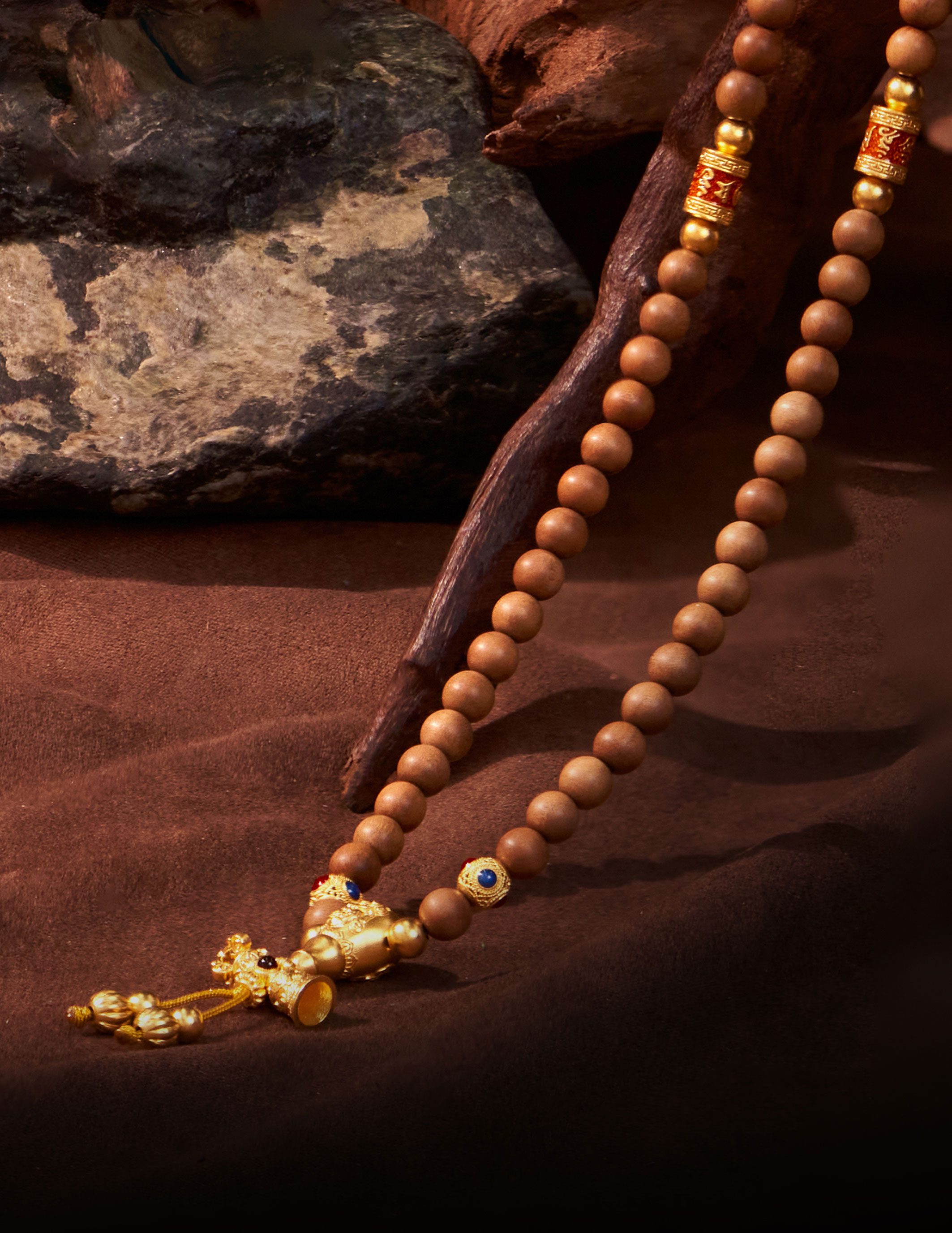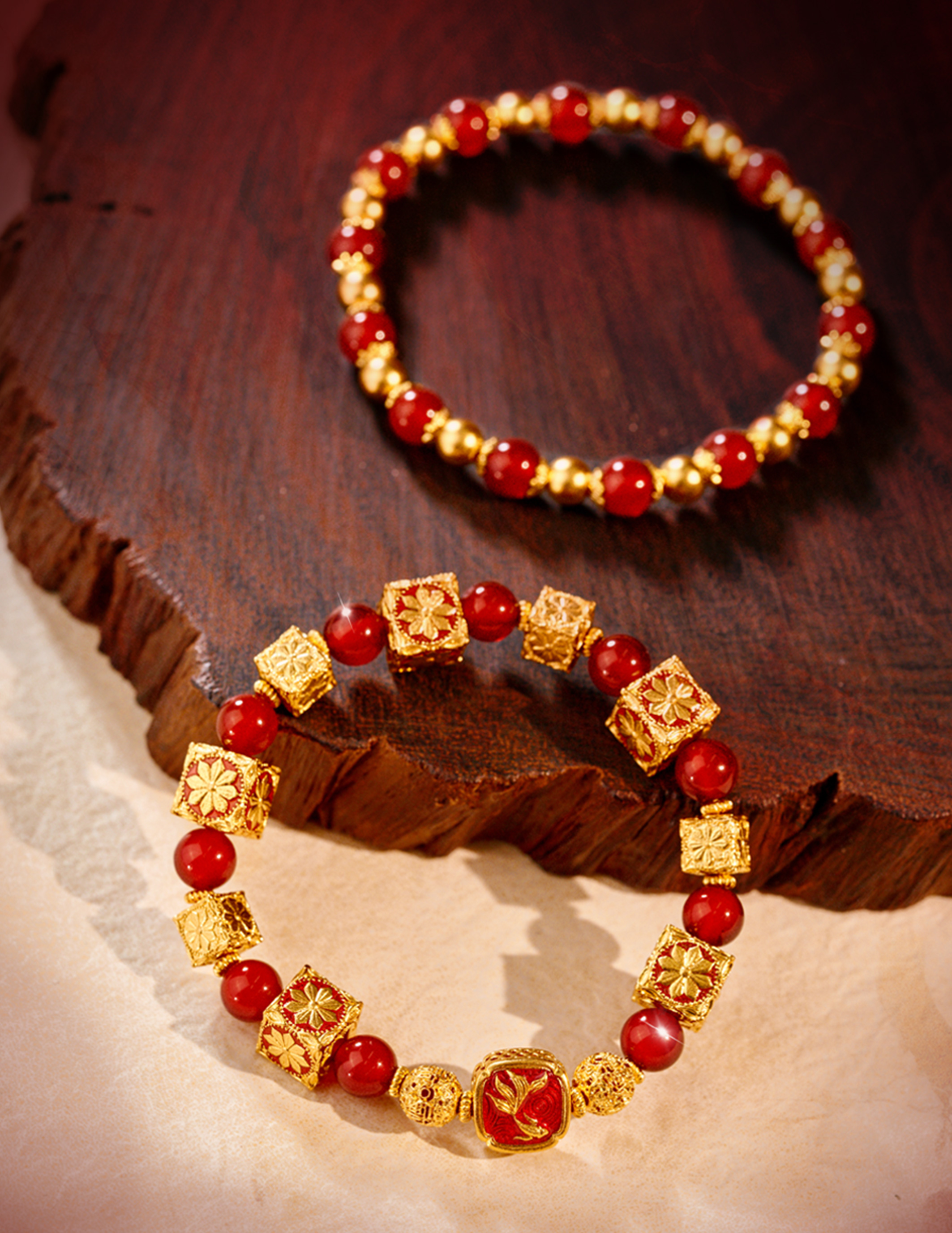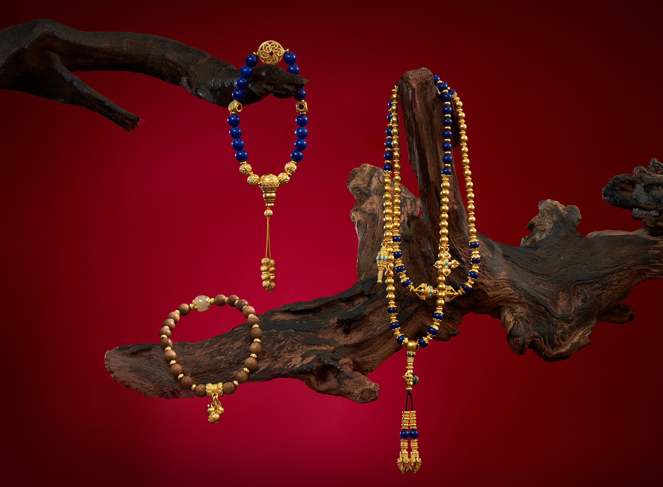 用多种材质搭配古法金做成文玩手串,更赋予吉祥寓意